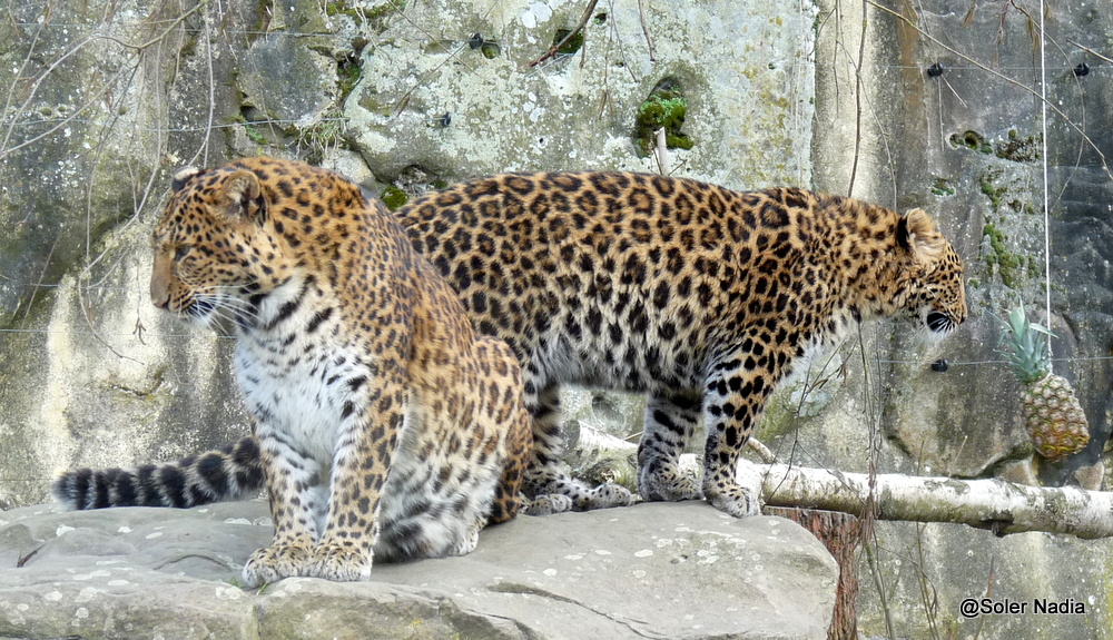 Je pense qu’il s’agit du guépard (et oui, je n’ai pas noté au fur et à mesure des enclos … ). Les panthères des neiges ayant des tâches bien plus grosses ….. On a eu un peu de mal à les apercevoir, leur pelage se confondait avec le sol et les feuilles au début …